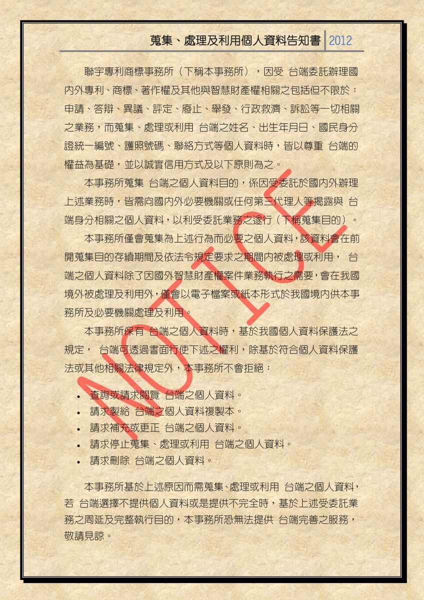 聯宇專利商標事務所 (執行業務扣繳統編 02624811) © 2023 Lianyeu all rights reserved